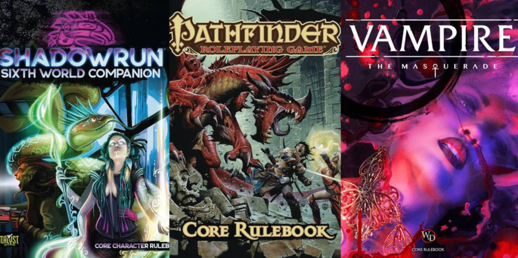 Puedes formar parte del mundo de películas y libros El Señor de los Anillos o el universo literario del Cosmere sandersiano. Explorar los mundos de videojuegos como Dark Souls y Pokemon. O, uno de mis favoritos, crear tus propias temporadas en Buffyverse con Buffy: The Vampire Slayer el juego de rol.